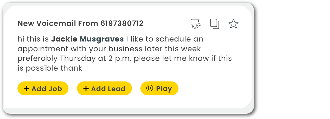 With Workiz Phone, voicemail messages are automatically transcribed and sent to your Workiz Message Center for you to review.