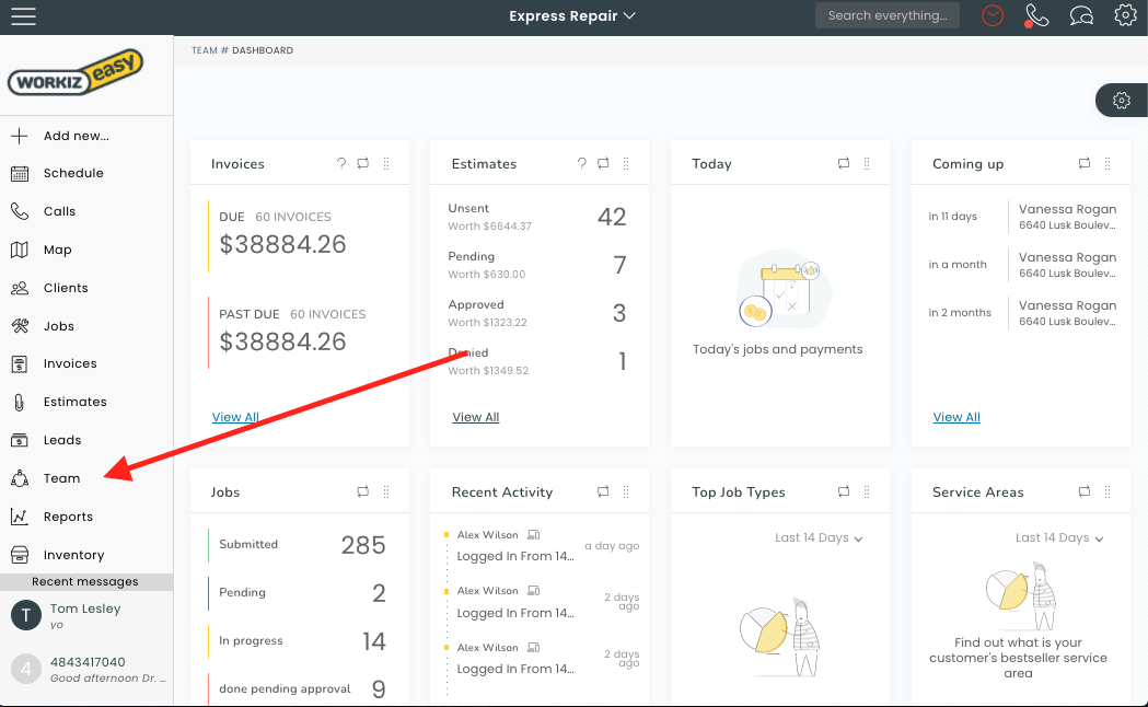4. Click on the "Team" tab from the left navigation bar or click on "Go To Commissions Settings"