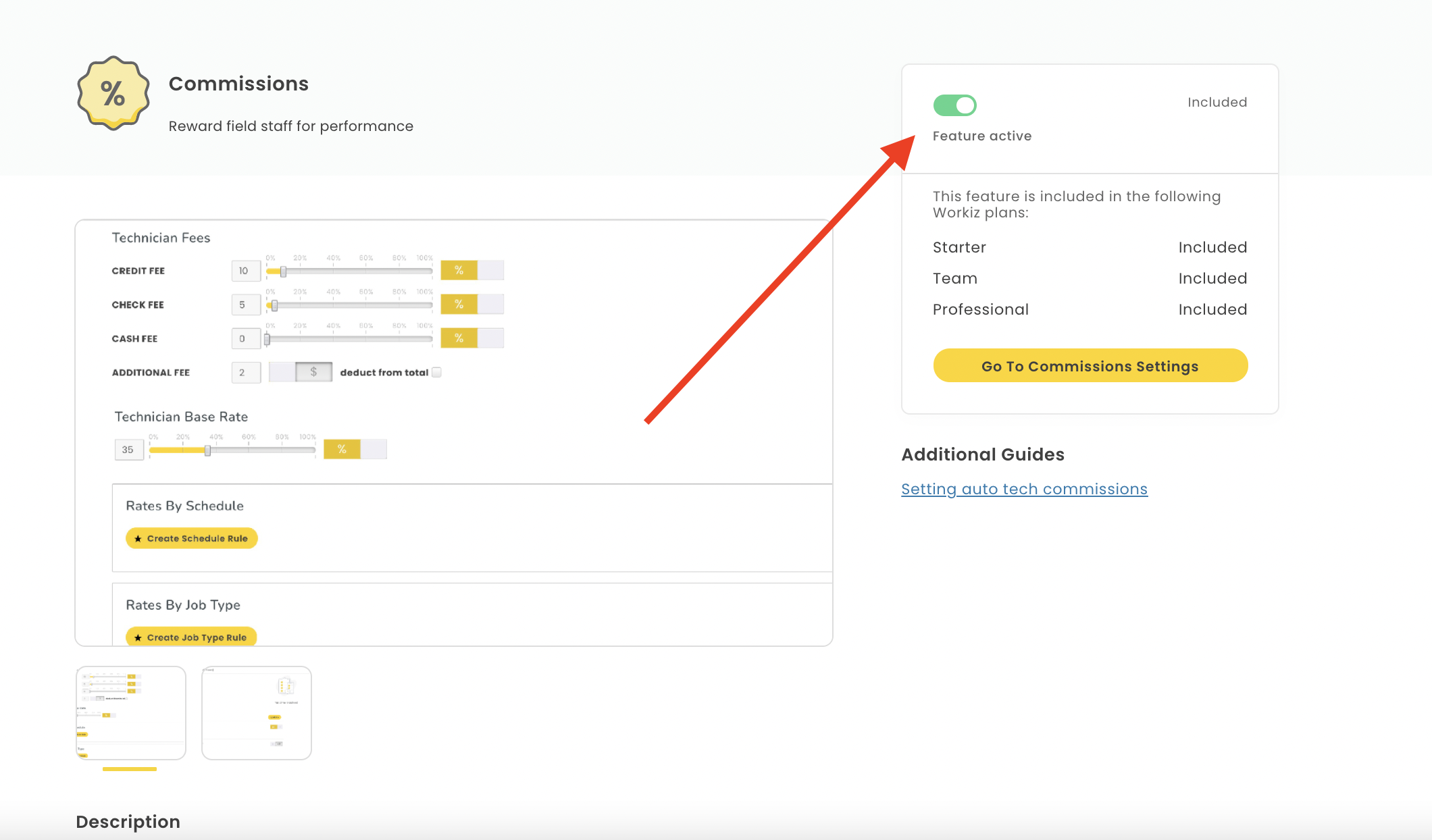 Example: Rate is 30% and the Job total is $100. The job was paid with credit card and the Credit fee is 10% — the tech's commission is $27 and the company's profit is $73