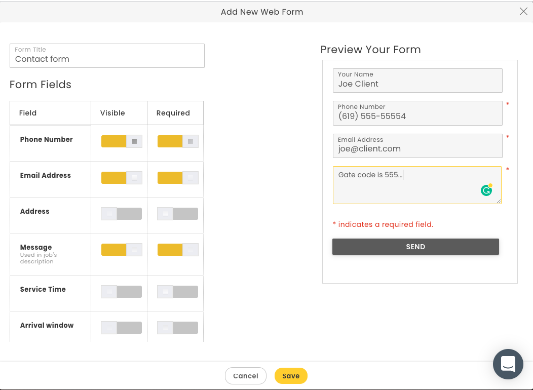 Workiz lets you take service requests from your website with a customizable form that can be easily embedded into your website.