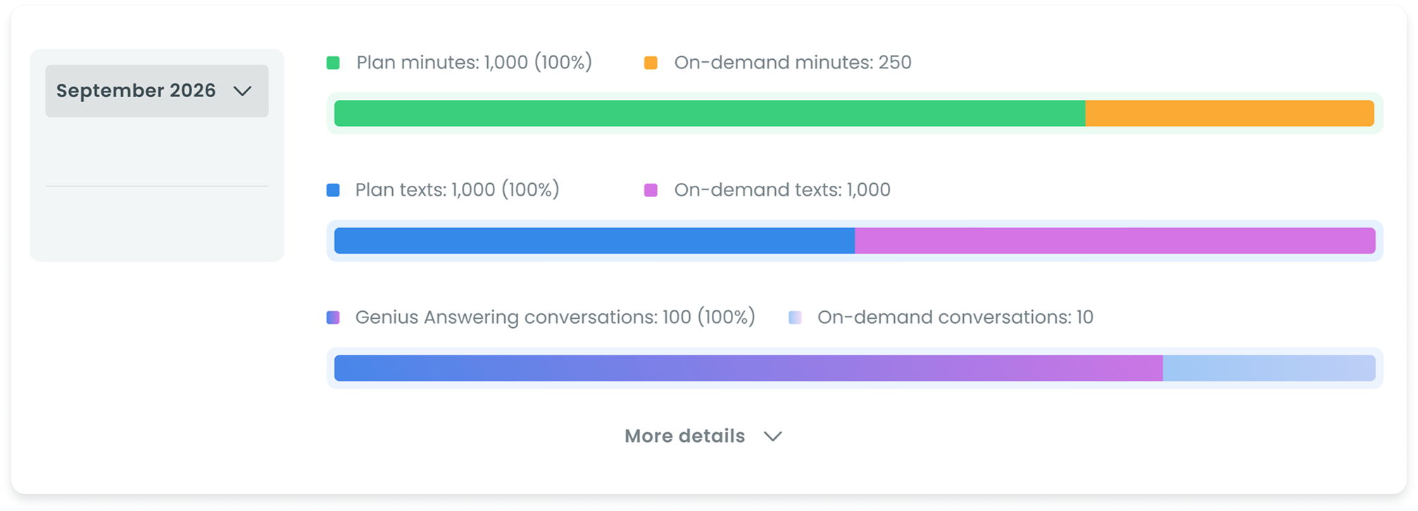 Each Genius Answering plan comes with a set number of AI conversations that you can use each month. If you run out of conversations during your billing cycle, you'll have the option of setting up on-demand to be charged per conversation.