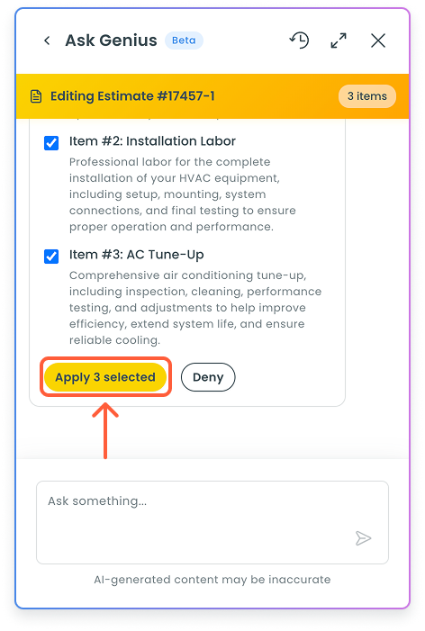 - Allow for Genius Copilot to suggest improvements to your estimate items