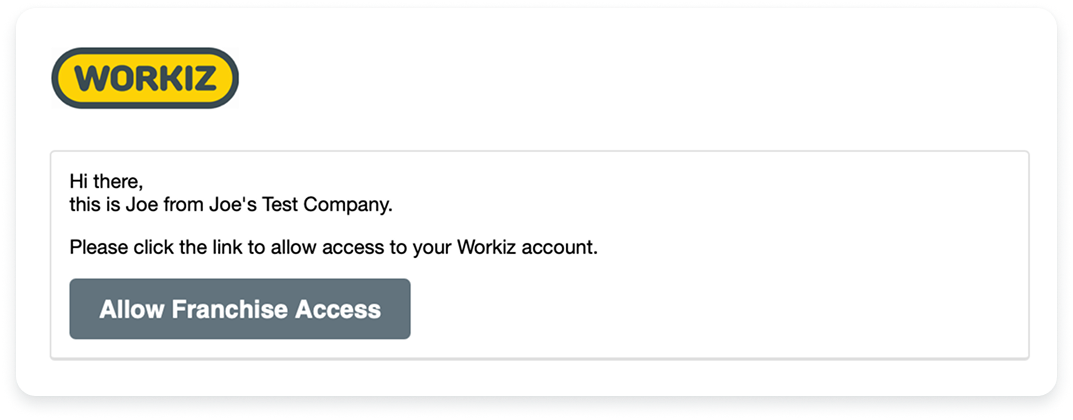 The admin of the sub-account you invited to join your franchise account will receive an email invitation to connect their existing Workiz account to your HQ account.